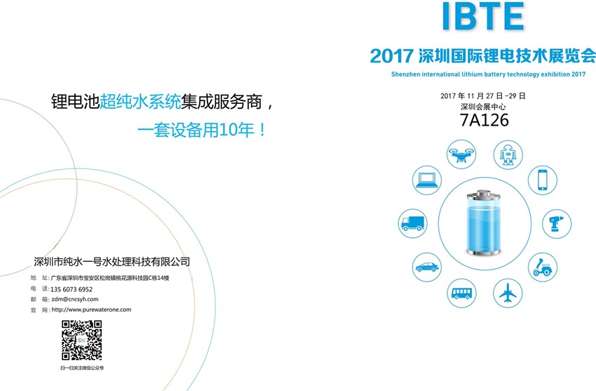 超純水處理設備廠家深圳純水一號將參加2017年深圳國際鋰電池技術交流展